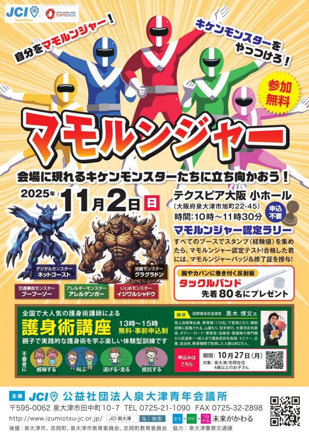 ご家族皆様でご参加いただき、防災と安全について楽しく学び、最強のマモルンジャーを目指しましょう!皆様のご来場をお待ちしております!